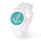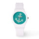 Die nautische Armbanduhr für Frauen mit niedlichem Ankersymbol von Schiffen in grüner Boote und hübscher Hintergrundfarbe kann man ändern. Tragen Sie Ihre Zeit stilvoll mit diesem maritimen Design, entworfen für Damen oder Mädchen.