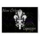 Themed Anmerkungskarte New Orleans mit Eisenarbeits-Lilie, Karnevalfarben und einem unserer Lieblingswörter…