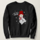 C'est un adorable sweatshirt de femme avec un bonhomme de neige qui danse dans la neige avec les mots "Laisse-le neiger".