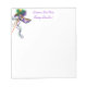 5,5" x 6" weiße Notizblock verfügt über eine wunderschöne lila, grüne und goldene Satin-Maske auf einem Stick mit koordinierenden Federn und Bändern, und der Text "Laissez Les Bon Temps Rouler" (Lass der Good Times Roll), in lila französischer Schrift. Siehe die gesamte Mardi Gras Notepad-Auflistung in den SONDEREN TOUCHS | Abschnitt Gastgeschenke.