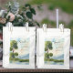 Lake Evergreen Aquarell Hochzeit danken Ihnen für Taschen mit idyllischer landschaftlicher Landschaft. Wasserfarbene Landschaft mit immergrünen Bäumen und Grünpflanzen, blauen Bergen und einem ruhigen See unter einem klaren blauen Himmel. Das Design ist in staubigen Blau-, Winkeln- und Grüntönen gehalten und mit elegantem Drehbuch und moderner Typografie versehen. Bitte stöbern Sie in meiner Evergreen Kollektion nach passenden Artikeln oder schreiben Sie mir, um die Vorlagen zu erstellen, die Sie benötigen.