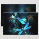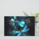 Zwei lichtdurchflutete, türkisfarbene, kunstvoll gezeichnet Libellen mit lichtdurchlässigem Sealgen und Glühwürmchen im Hintergrund. Glühende Libelle.