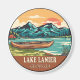 Laniersee handgezeichnete Abbildung mit Kanu, Zelten und Bergen im Hintergrund. Ideal für alle, die Lieben haben, den Lanier See zu besuchen.