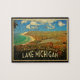 Diese wunderschöne Seelandschaft des Michigan-Sees sagt "Die große Schönheit der Natur". Herbstlaube und das blaue Grün des Großen Sees mit Bäumen, die von den Rändern ausgehen.