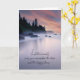 Der malerische See mit Felsen und Bäumen und der Sonnenaufgangshimmel für das allgemeine Beileid. Alle Texte können geändert werden.