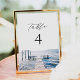 This wedding table number features a watercolor painting of a peaceful lake pier. This table number makes the perfect addition to your lake themed wedding or any other special event.