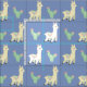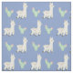 Niedliches Lamamuster mit Kaktus hinter blauem Hintergrund. Lama hat einen niedlichen bunten Sattel. Wenn ein Kaktus nach einem Lama kommt.