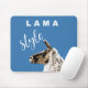 Lama-Portrait auf blauem Hintergrund und weißer Text "Lama Style"