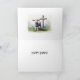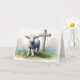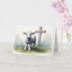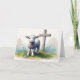 Schönes Lamm mit Kreuz und blauen Blumen Osterkarte.