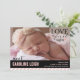 Le nouveau-né du bébé en photo complète avec Love At First Sight design typographique dans le coin avec un peu d'oreille dans un cercle scallopé. Customisez avec votre propre libellé. Si vous avez besoin d'un changement de couleur ou de mise en page, envoyez un courriel à paula@labellarue.com avant de passer votre commande. :: Crédit photo Katina Bentley Photography | Scituate, Massachusetts | http://www.katinabentley.com :