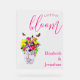 L'amour est en fleurs ! Collection de mariages floraux vifs avec un bouquet dans un vase en marbre entouré de papillons, et accompagnée d'une typographie fuchsia.