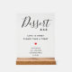 Ajoutez cette barre de dessert minimaliste en acrylique transparent à votre réception de mariage. On y lit "l'amour est doux s'il vous plaît prenez un gâteau" et les bonbons que vous ajoutez à la table, mais il peut être entièrement personnalisé avec votre propre texte. Conception calligraphique simple pour une réception avec un style de police intemporel. Le coeur peut être retiré en cliquant sur le bouton pour customiser la conception.