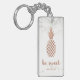 Ce porte - clé élégant comporte un regard rose d'or de faux (feuille d'or non réelle) sur un arrière - plan de marbre blanc de regard. Un ananas est décrit avec les mots "soit doux" dans la typographie à la mode, et a une tache pour votre nom.