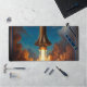 Une spectaculaire fusée de fusion rétro dans le ciel nuageux Sunset Sky AI Concept Art de Xzendor7; présente un navire de roquette qui monte dans les cieux, ses puissants moteurs émettant des flammes orange vif et d'épais panaches de fumée tandis que la fusée dorée et élégante monte majestueusement dans l'air.