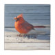 Roter Kardinal mit Samen sitzt glücklich auf einer Landbrücke und bildet eine hübsche dekorative Kachel. Hervorragender Zuhause-Akzent ! Dekorative Kacheln können auch als Trivet oder auf einer hölzernen Geschenkboxen für ein wirklich besonderes Geschenk verwendet werden!