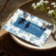 BlumenVisitenkarte mit hübschem Muster in Weiß, Blau und Grün. Vergiss-me-nots verstreut über einen weißen Hintergrund in einem charmanten Muster. Eine schöne Visitenkarte für ein Bed and Breakfast oder Parfümerin oder Blumendesigner oder mehr.