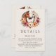 Genießen Sie Ihre Hochzeitsarbeit mit den eleganten zweiseitigen Detailkarten, die Ihr modernes Western-Thema ergänzen. Dieses elegante Landpferd-Design, das sich in einem farbenprächtigen, herzförmigen Blumenarrangement umschlingt, symbolisiert Liebe, Harmonie und Einheit - perfekt für eine Hochzeit mit rustikalem Western. Auf der einen Seite finden Sie wichtige Informationen zum Empfang, damit Sie wissen, wo Sie Ihren besonderen Tag feiern können, auf der anderen Seite finden Sie Informationen zu den Unterkünften für ein nahtloses und stressfreies Erlebnis. Diese wunderschön gestalteten Karten behielt Ihre Gäste stilvoll auf dem Laufenden.