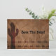 Dieser Country Western Ankündigung Datum freihalten ein Western-Thema mit Kakteen und Stacheldrahtzaun. Ideal für einen Western oder eine Hochzeit auf dem Land!