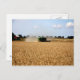 Postkarte mit Foto eines Felds und einer großen Maschine, die daran arbeitet. Personalisierbar.