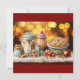Eine Sammlung köstlicher Leckereien, darunter Kekse, ein Milchshake und ein Kuchen, ist auf einem Tisch mit dekorierten Tischdecken, umgeben von Äpfeln und Herbstblättern, eingerichtet. Die warmen, glühenden Lichter im Hintergrund schaffen eine gemütliche, festliche Atmosphäre. Digitale Kunstfotografie CS5