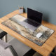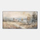 Das Design der Tischmatte zeigt ein koloniales Gemälde eines Landhauses, das in einem Wald zwischen Hügeln liegt. Dieses Design bietet eine entspannende Stimmung mit gedämpften und sanften Farben.