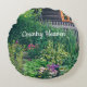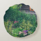 Rundkissen mit einem Foto friedlichen Sommergarten und gemütlicher hölzerner Hütte für Gärtnern, Landfreunde, rustikale und Öko-Stilliebhaber. Sie können den Text "Country Heaven" löschen oder durch Ihren eigenen Text ersetzen. Für weitere Änderungen (Schriftart, Schriftart, Textposition) klicken Sie auf "Design bearbeiten".