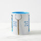 Die weiße Wand des Landhauses mit zwei blauen Fenstern. Ofen Gabel an der Wand zwischen den Fenstern. Funny anpassbare Kaffee-Tasse. Sie können zwei Vorlagentexte ändern oder löschen.
