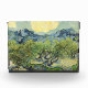 Landschaft mit Olivenbäumen (1889). Vincent Willem van Gogh. Landschaft in coolen Farben. Grosser Garten mit Bäumen. Es ist eine große gelbe Wolke am blauen Himmel. Reproduktion berühmter Kunstbilder im öffentlichen Bereich.
