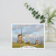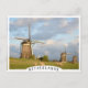 Foto Postkarte von drei Windmühlen und Schafen, die unter schönen Wolken am Himmel in einer herrlichen Frühlingslandschaft in den Niederlanden mit einem weißen Rand und dem Text 'Niederlande' in die Kamera schauen.