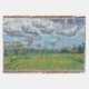 Landschaft unter einem stürmischen Himmel. Vincent van Gogh. Niedliche Sommerlandschaft. Sturm auf dem Feld. Grosser grüner Boden mit rotem Tetami. Im Hintergrund sind Bäume. Wolken laufen über den blauen Himmel. Reproduktion berühmter Kunstbilder im öffentlichen Bereich.