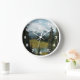 Entspannen Sie in diesem stilvollen Ambiente der Wanduhr mit weißen Ziffern und genießen Sie das landschaftliche Landschaftsbild des schneebedeckten Berges Rainier, der sich im Cascade-Gebirge des Staat Washington befindet. Wählen Sie Stil und Größe der Uhr aus. Verwenden Sie zum Dekorieren eines Wohnzimmers, Esszimmers, Küche, Schlafzimmers oder eines anderen Zimmers.