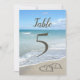 12x18 Tischnummer Card für eine Strandhochzeit. Landschaftliche Herzen im Sandstrand, für die Visionen der Entspannung im Paradies, feiern Ihre Hochzeit am Strand mit diesem schönen Design. Zwei miteinander verflochtene Herzen gezeichnet im Strand Sand am Meer, perfekt für ein Ziel, Insel, tropisches Paradies Küste nautische Veranstaltung. Türkisblau und hellbrauner Sand mit weißen Wellen am Ufer.