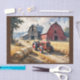 Landschaftliche Landschaft mit Scheune und Traktor Seidenpapier