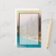 Stationery mit einem landschaftlichen Landschaftsfoto aus dem Norden. Ein türkisfarbener See mit einem Kiefernwald im Hintergrund und einem nebligen, nebligen Himmel, der ihm eine magische mystische Qualität verleiht.