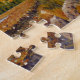 Landschaftlicher Blick auf den See Estes Park im schönen Rocky Mountain Nationalpark in Colorado. Im dichten Wald gibt es überall Kiefernbäume. Illustration eines originalen impressionistischen Ölgemäldes des Kunstmalers Daniel Fishback.