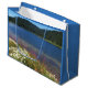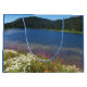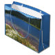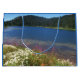 Genießen Sie Ihren Geschenkstil mit dieser großen Geschenktasche mit blauen Zierteilen und einem Foto-Bild eines landschaftlichen Sees mit bunten Wildblumen, die entlang der Küste wachsen. Wählen Sie Ihren Geschenksackstil aus.