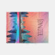 Das Blumengestein mit einem friedlichen See mit Reh und hohen Kiefernbäumen, die sich im Wasser widerspiegeln. Sterne schweben über.