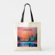 Eine Tasche mit einem schönen grafischen Design mit einem friedlichen See mit Reh. und hohen Kiefern, die sich im Wasser widerspiegeln. Sterne schweben über.