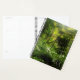 Malerisches Foto von Farnen und ihre Fronten und langen Stämme, grün und üppig mit Sonnenschein, der durch die Baumkronen der Pflanze scheint. Es gibt einen eigenen Text für einige Wörter und für das Jahr des Planers.