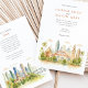 Feiern Sie Ihren besonderen Tag mit dieser wunderschönen Aquarellhochzeit-Einladung, die die ikonische Skyline von San Diego, Kalifornien, einfängt. Das Kunstwerk besticht durch herausragende Sehenswürdigkeiten, die in einem sanften, einladenden Aquarellstil gehalten werden. Dazu zählen ein Gebäude mit einer markanten Kuppel und Spires (die wahrscheinlich die Architektur des Balboa Parks oder des Uferviertels repräsentieren), die elegante Coronado Bridge über dem Wasser und die moderne Skyline der Innenstadt im Hintergrund. Grüne Bäume und große, grüne Palmen umrahmen die Szene, was das urbane Ambiente an der Küste noch verstärkt. Die Farbpalette umfasst warme Terrakotta für architektonische Details wie die Kuppel und die Brücke, eine ruhige Blues für Wasser und Himmel, verschiedene frische Grüntöne für Bäume und Blätter, weiche Grau- und Beige-Farbtöne für die Gebäude der Stadt, die alle einen malerischen Ausblick schaffen. Diese Einladung ist ideal für eine San Diego Hochzeit in Urlaubsort oder eine Feier für Paare, die diese wunderschöne Stadt in Südkalifornien Liebe. Die Vorderseite präsentiert elegant Ihre Hochzeitsdetails, während die Rückseite "The Finer Details" für weitere Gästeinformationen anbietet.