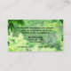 Diese Visitenkarte, die einen landschaftlich gestaltenservice annonciert, lädt Sie ein, eine grüne belaubte Welt des Friedens und der Ruhe zu betreten. Dunkler Ahorn verlässt Rahmen das Bild und führt zu eine sonnige Waldszene mit Schatten von Gelbem, von Weiß und von Waldgrün. Fertigen Sie allen Text zum Anzug Ihr Geschäftsbedarf besonders an.