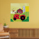 Landschaftsszene mit Gesangsroster auf Traktor Poster