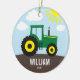 Dieser lustige personalisierte Traktorschmuck ist perfekt für Traktoren oder Bauernliebhaber in Ihrem Leben. Dieses Ornament verfügt über einen lustigen grünen und gelben Traktor mit einer hellgelben Sonne und einigen puffigen weißen Wolken.