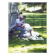 Eine Aquarellfarbe von zwei Bauern handscheren Schafe und Kunst, die in diesen modernen Zeiten selten zu sehen sind.