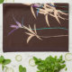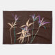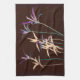 Das impressionistische Kunstwerk von ZoeSPEAK auf diesem Küchentuch stammt aus Zoes Originalfoto von mexikanischen Petunia-Blätter und ihren Schatten an einer Mauer. Die Blätter sind in lila, lavendelfarbenen und grünen Tönen gehalten, mit langen grünen Stielen und cremig beigen Schatten. Der Hintergrund ist texturiert, sehr dunkelgrau bis schwarz.