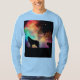 Blau langärmeliges Shirt mit Klippe im Hintergrund mit einem Wolf und einer schönen Galaxie