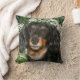 Schwarzes langhaariges Dackelgesicht mit einem Wildblumehintergrund-Foto Throwkissen