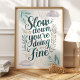 Mit diesem beruhigenden "Slow Down, You're Doing Fine"-Kunstdruck finden Sie Ruhe und Akzeptanz für den aktuellen Moment. Mit seinem eleganten Drehbuch, umgeben von zarten Aquarellfarben-Blätter und Wolken, dient dieses Stück als sanfte Erinnerung, die einfachen Lebensfreude zu unterbrechen, zu atmen und zu schätzen. Ideal, um Ihrem Schlafzimmer, Wohnzimmer oder Arbeitsbereich eine Touch der Ruhe hinzuzufügen.