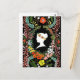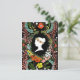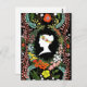 Cette carte postale enregistre un poème d'amour écrit par un garçon à une fille dans la "langue des fleurs", le moyen de communication de l'ère victorienne dans lequel diverses fleurs et arrangements floraux ont été utilisés pour envoyer des messages codés, permettant aux individus d'express des sentiments qui autrement ne pouvaient pas être parlés. En commençant par le côté gauche de la couronne sur le côté droit, chaque fleur révèle une autre partie du puzzle manquant. Sont inclus dans le poème les amaranthes globes, les lunettes noires, les marguerites, les pavots, les pavots, les tulipes, les gloires du matin, roses, magnolias, feuilles de lauriers, laurestine, oublions-moi-nots, suckle de miel. Essayez de déchiffrer le poème avec votre guide ici : http://en.wikipedia.org/wiki/Language_of_flowers La silhouette de la reine Victoria occupe une place prépondérante sur l'arrière - plan noir comme symbole de l'époque et comme amoureux de la beauté et du port des fleurs dans les cheveux.