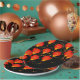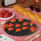 Die schwarze Nacht wird von vielen roten Laternen beleuchtet, die mit einer zarten, bestickten Saite aufgehängt sind.
